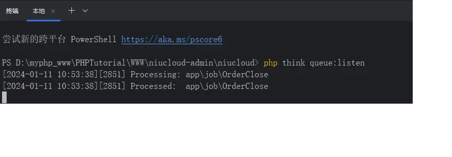 打开终端,切换到项目的 niucloud 目录,执行以下命令启动队列监听: