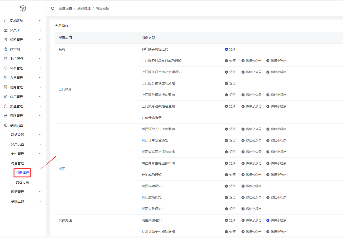 这里只做简单说明,详细请查看消息开发文档: 消息开发