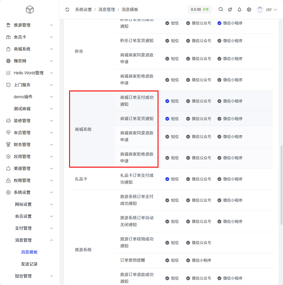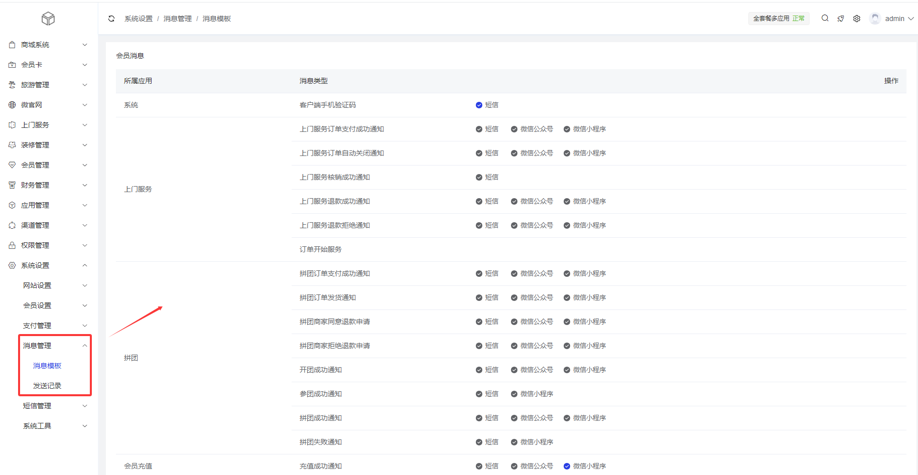 消息发送包括:SMS短信、微信模板消息、微信小程序提醒消息