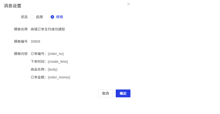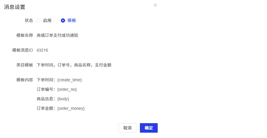 'name' => '商城订单支付成功通知',// 模板名称,消息类型的名称