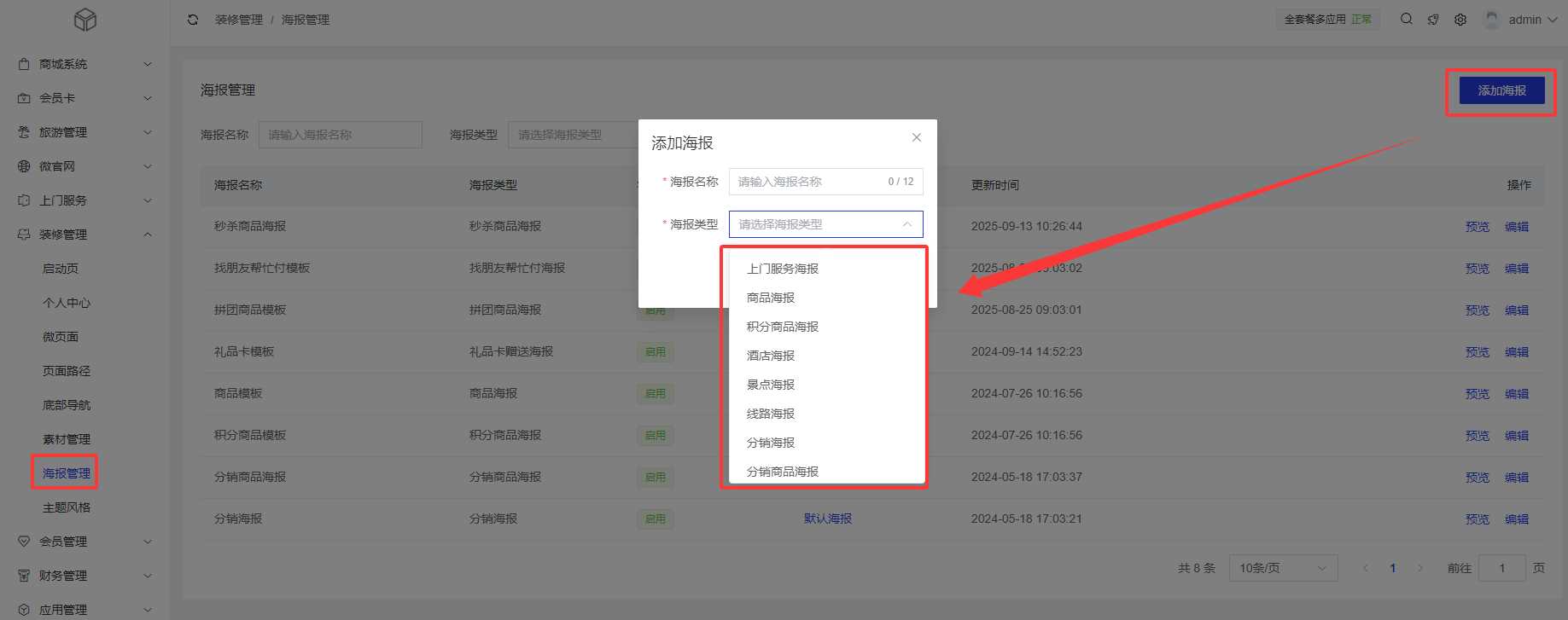使用场景:定义海报类型,用于添加海报时选择海报类型,以及后续业务处理。插件可以添加自定义的海报类型。