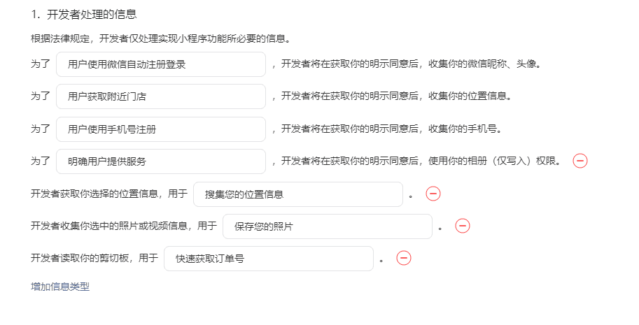 1、为了___开发者将在获取你的明示同意后,收集你的微信昵称、头像。(必选,不然会影响小程序点击授权登录无反应)