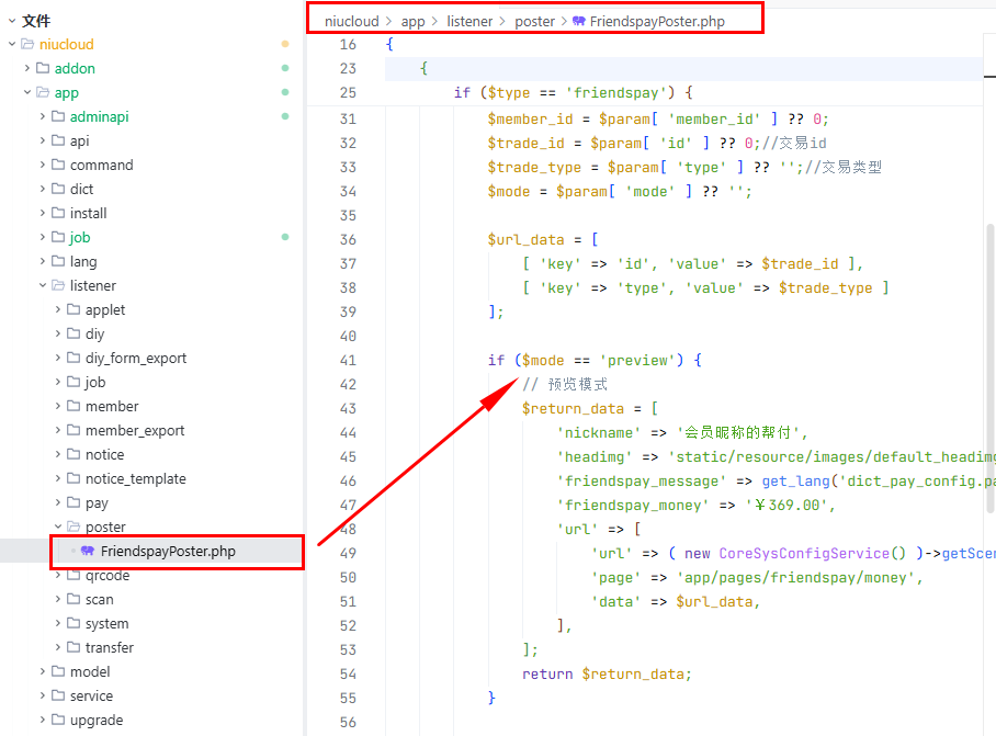 插件根据自身业务实现(参考:niucloud/addon/shop/app/listener/poster/ShopPoster.php)