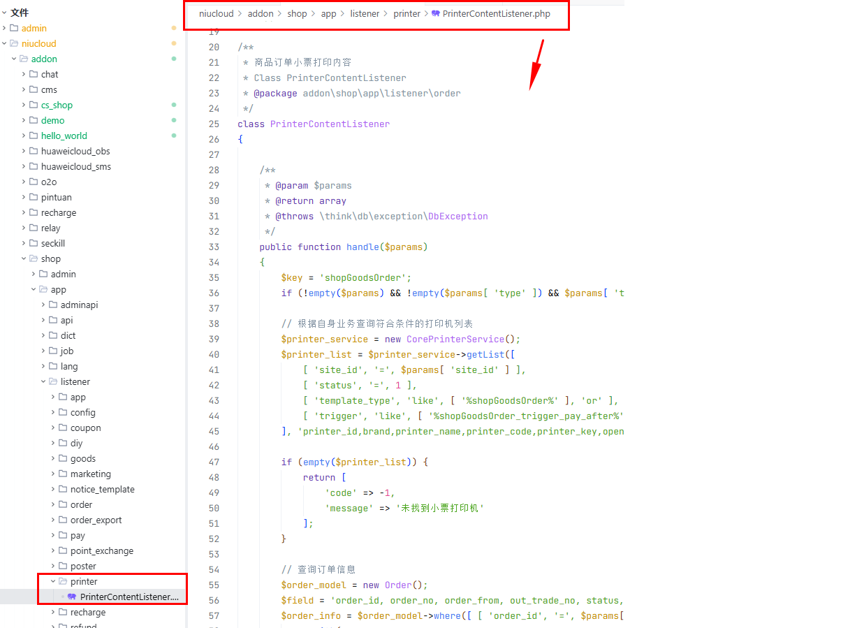 PrinterContentListener.php是小票打印的核心,负责生成打印内容