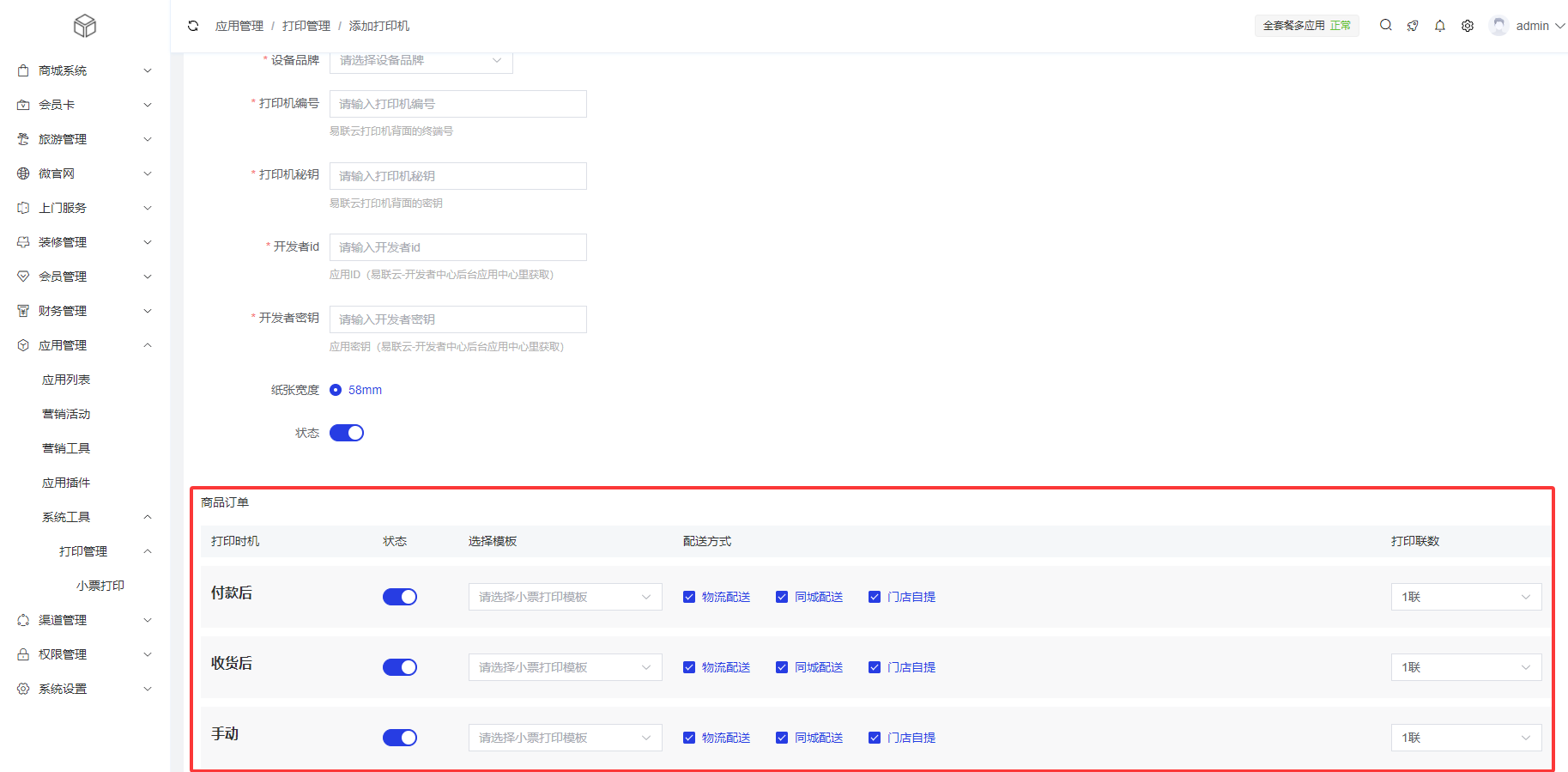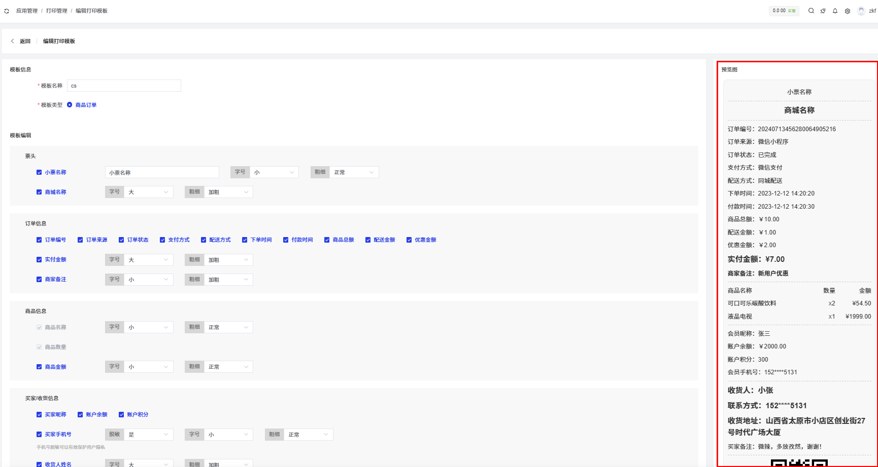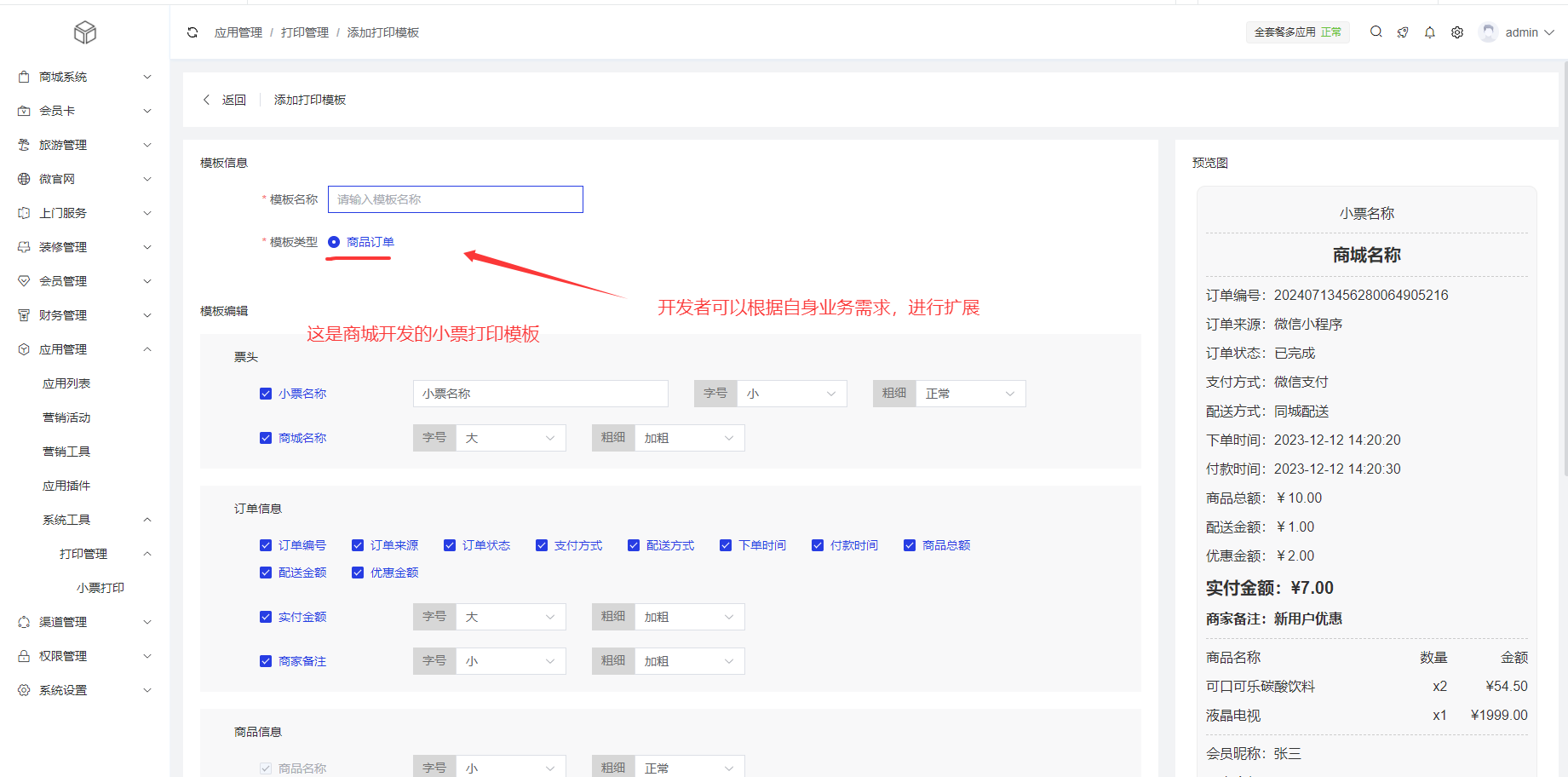 商城插件开发的小票打印内容