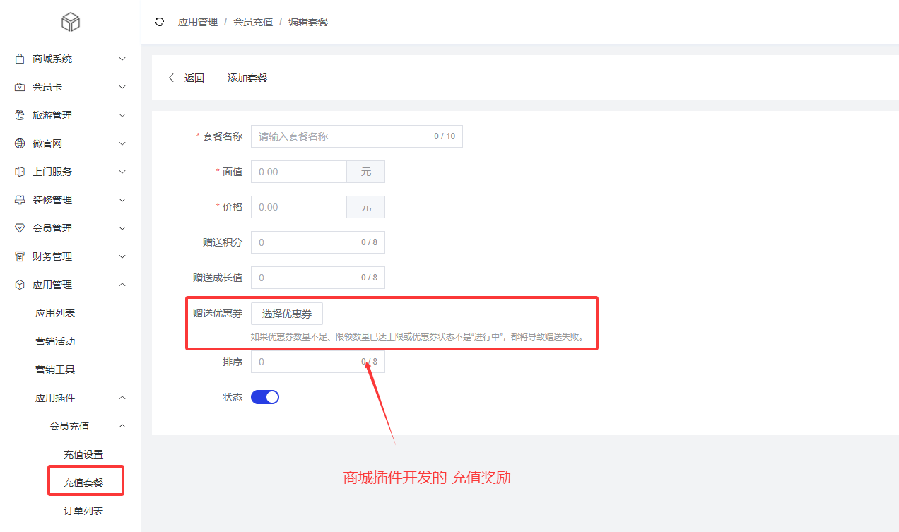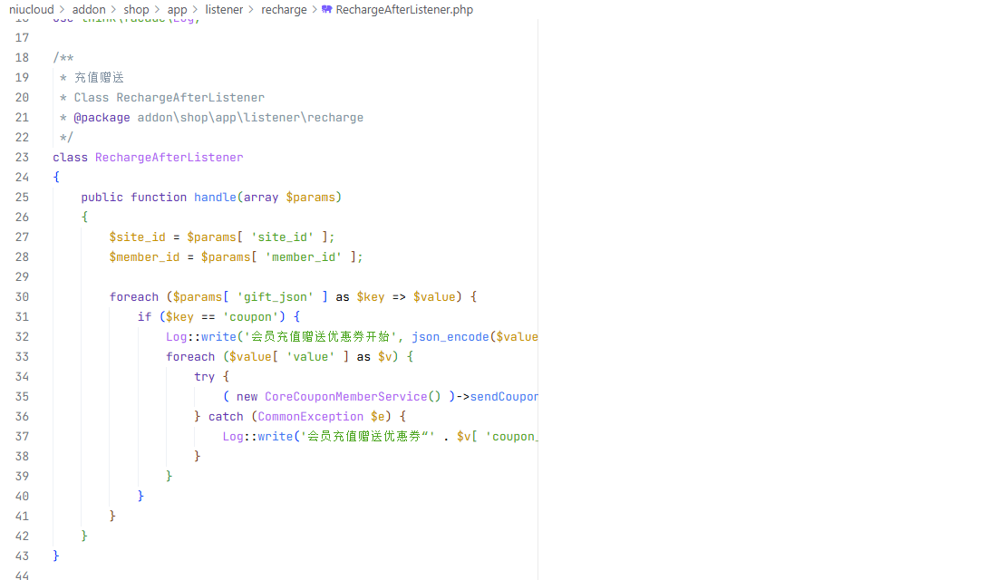 需要实现会员充值赠送内容、会员充值成功后的事件,这两个事件钩子