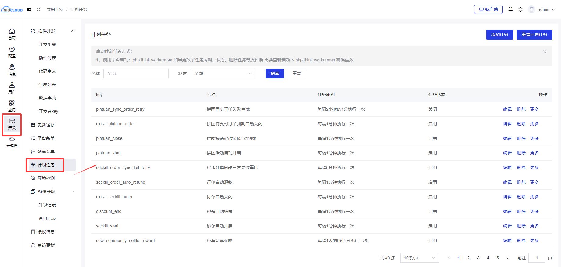 修改计划任务参数后,必须重启workerman才能使新配置生效