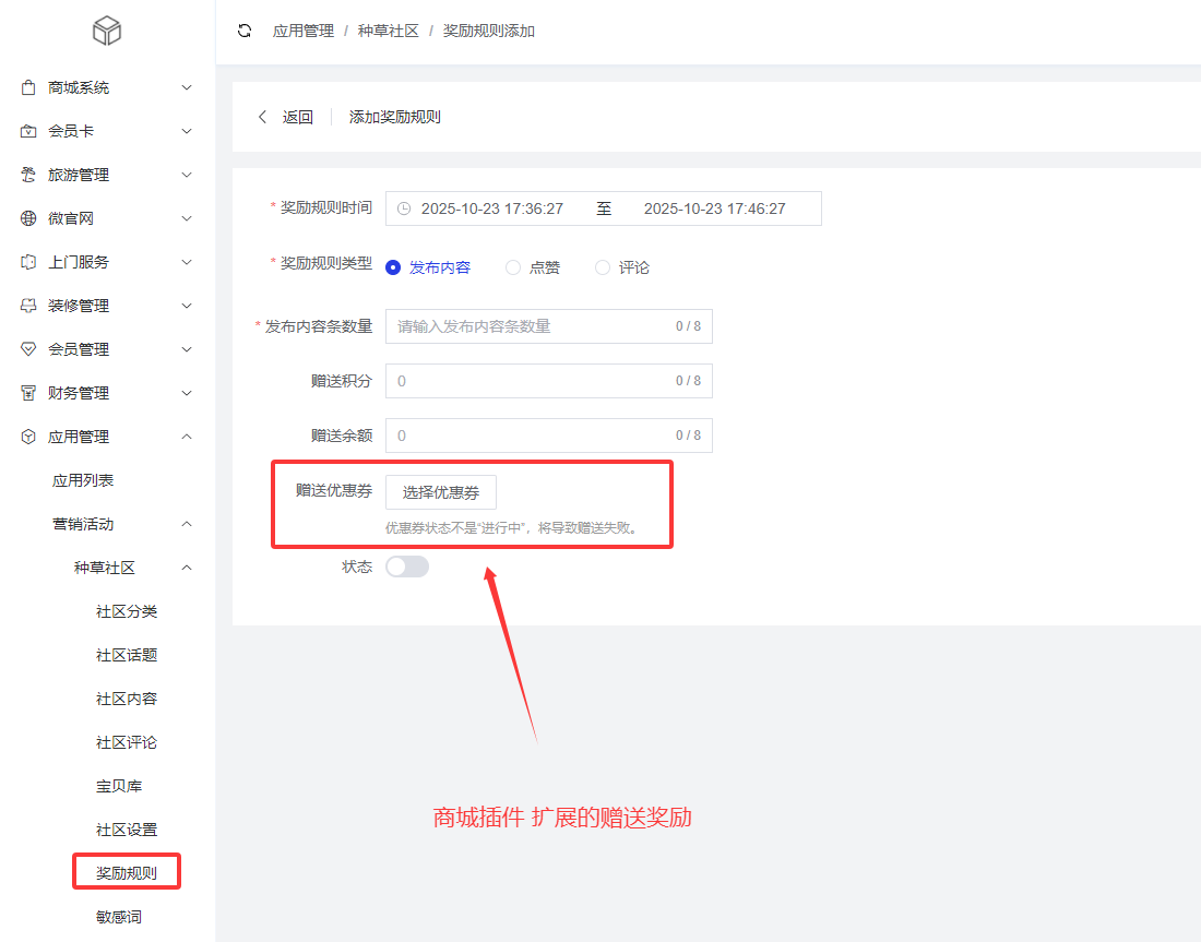 // 发放优惠券