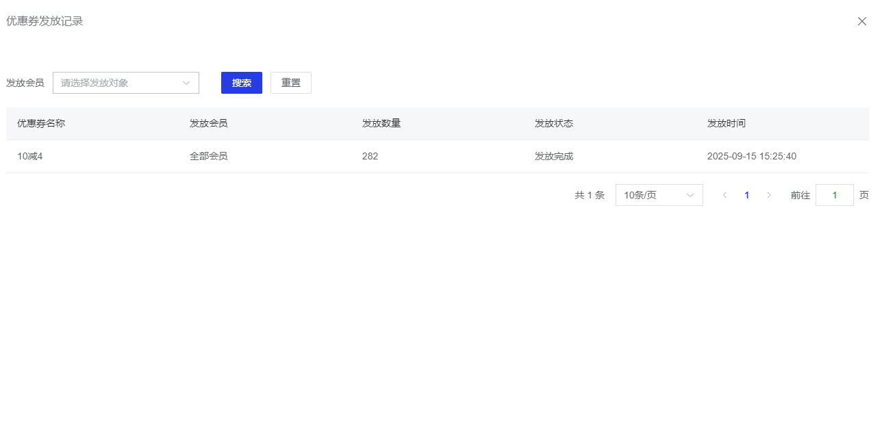 - 发放记录:查看优惠券的发放情况,包括优惠券名称、发放会员、发放数量、发放状态等信息