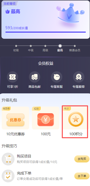 - 会员权益:平台会员体系中,不同等级的会员享有差异化的等级权益,会员等级越高,获得的积分回馈越丰厚。