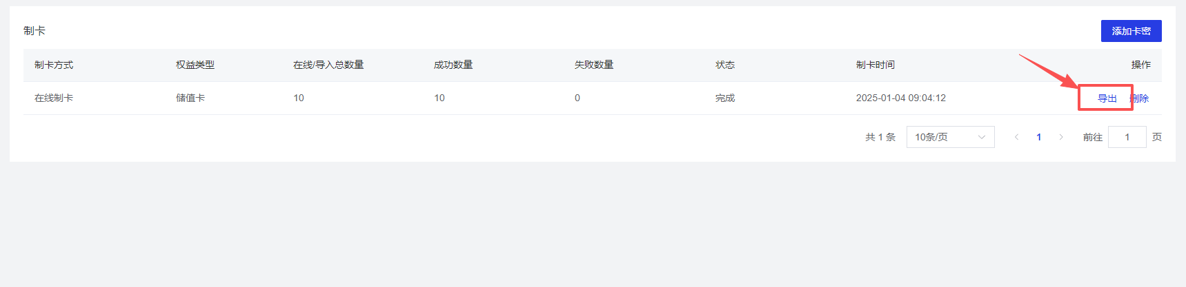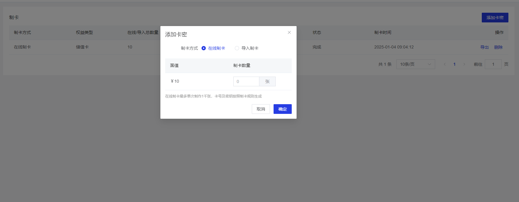 - 导入制卡需上传卡密文件,注意不要重复,且单次最多制作1千张