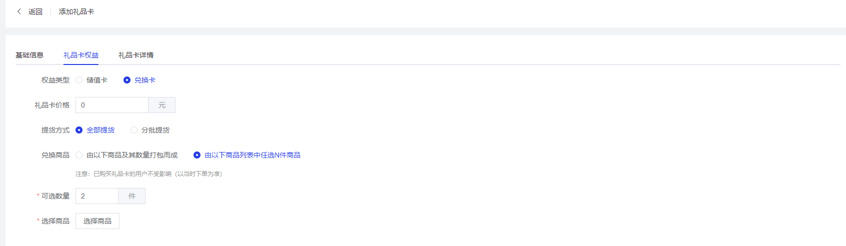 b.兑换卡 提货方式支持选择全部提货/分批提货