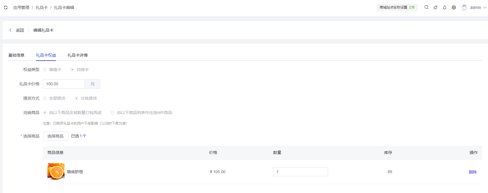 除礼品卡类型、权益类型、提货方式、兑换商品外,其余项均可编辑