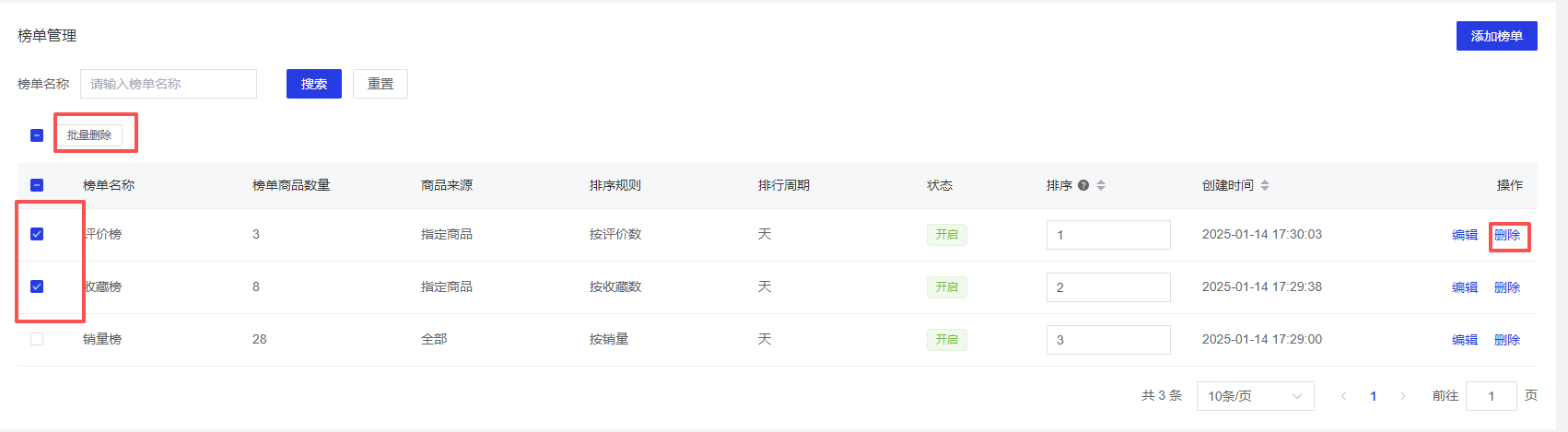 对于不需要的榜单,点击【删除】按钮可将其从系统中移除。