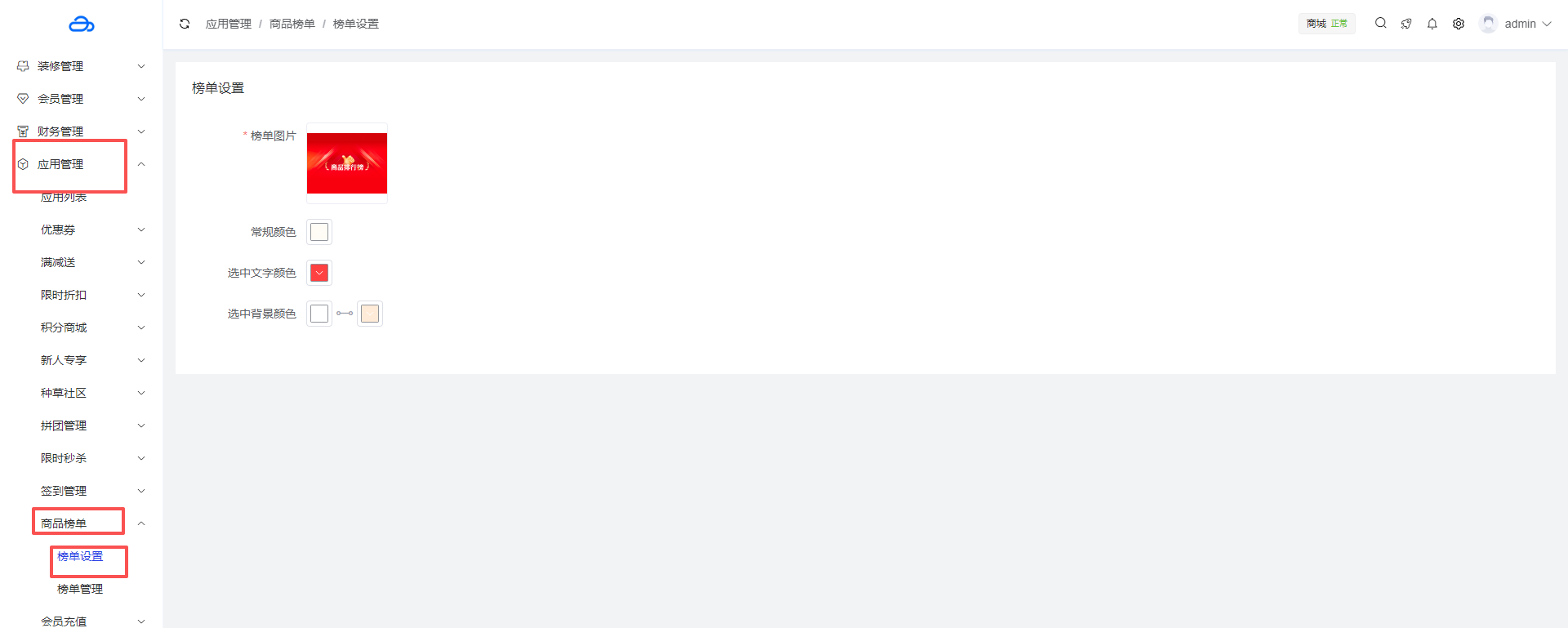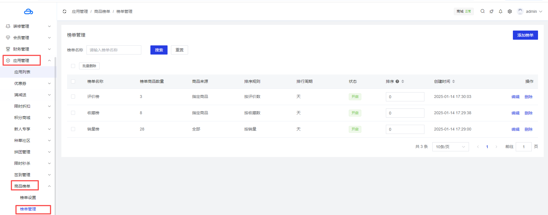 应用管理 > 应用列表 > 商品榜单 > 榜单管理