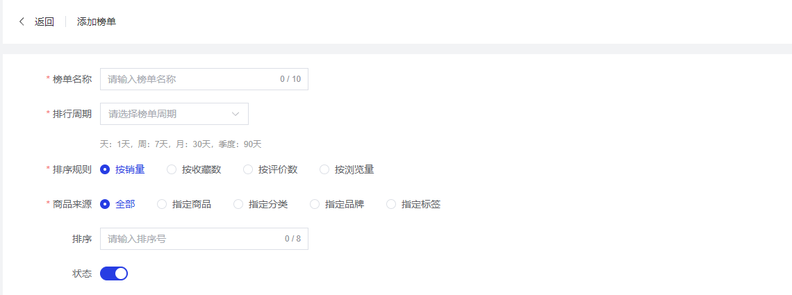 点击【添加榜单】按钮,进入添加榜单页面,可设置以下内容: