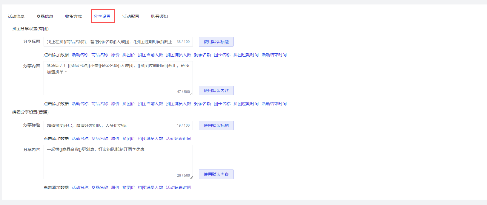 拼团分享设置(有团/普通)