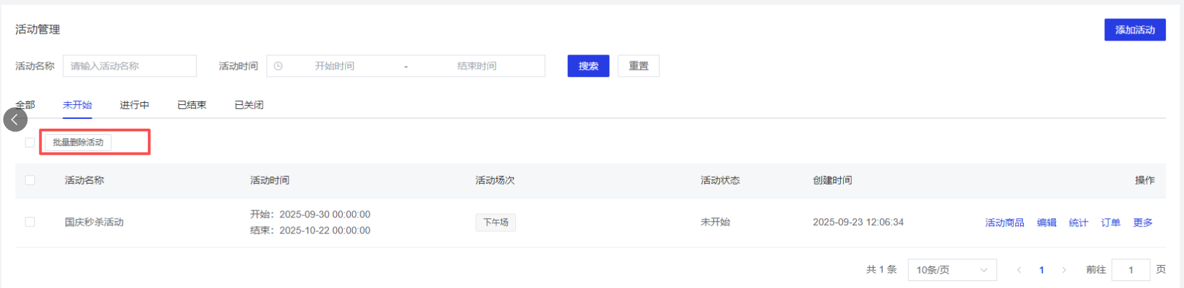 - 进行中活动:支持批量关闭活动