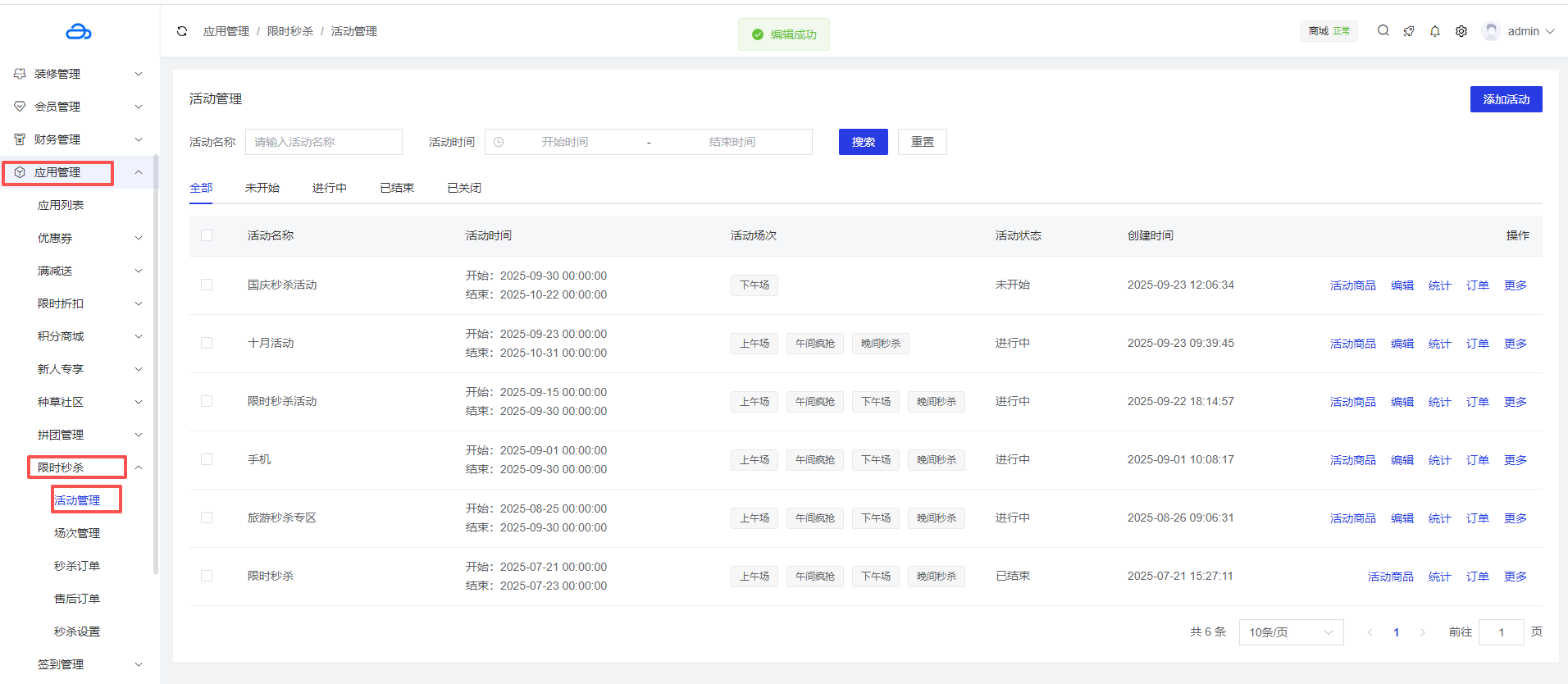 应用管理 > 应用列表 > 限时秒杀 > 活动管理