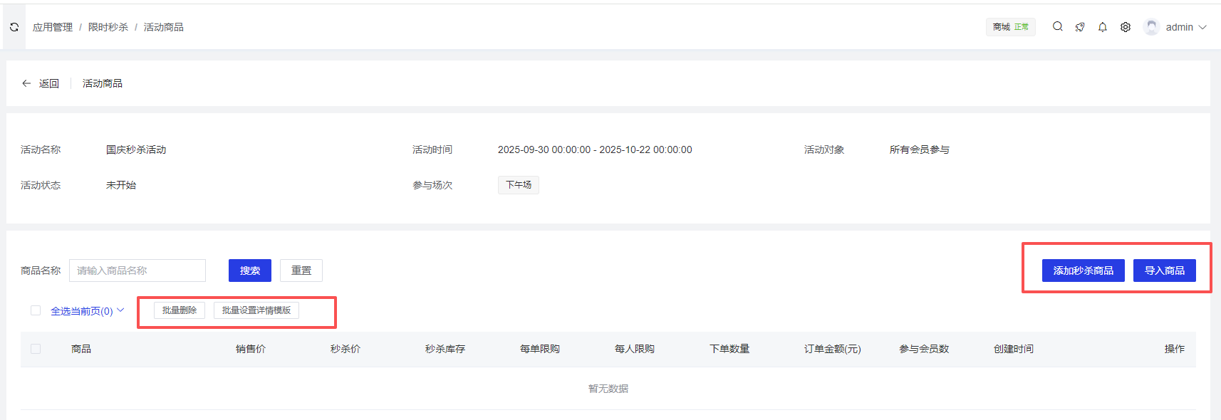 - 支持直接导入商城商品/手动添加秒杀商品