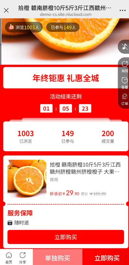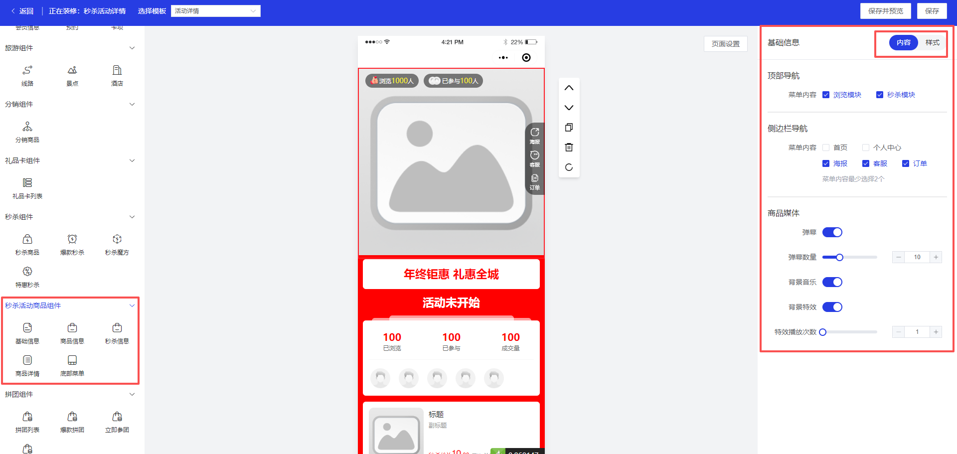 商家可以自定义秒杀活动商品组件的显示顺序、组件内容及样式,以满足不同的活动需求。