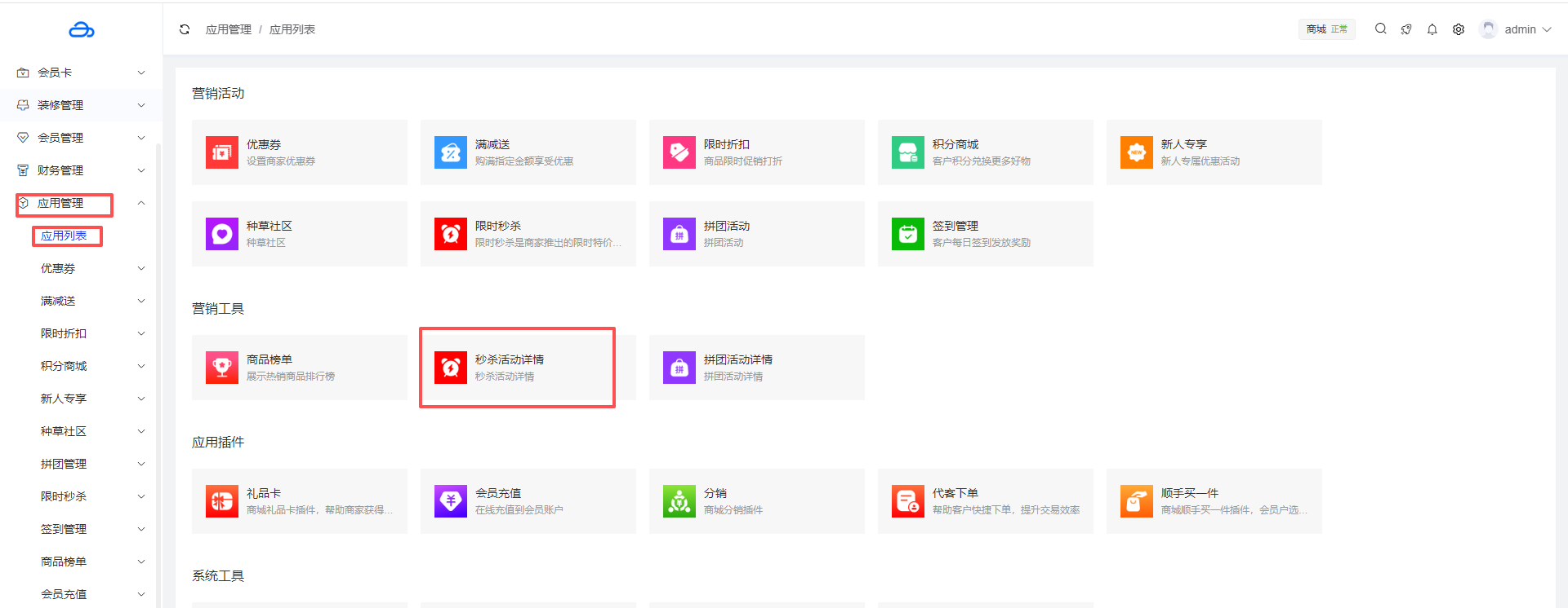 应用管理 > 应用列表 > 秒杀活动详情
