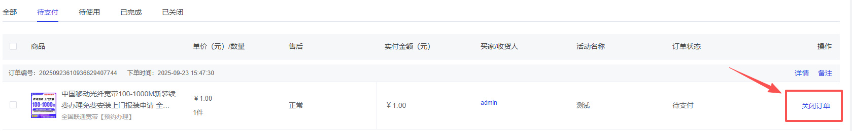 除了可以在营销管理-限时秒杀-秒杀设置里设置自动关闭订单时间外,商家也可以在待支付订单中直接关闭某个订单