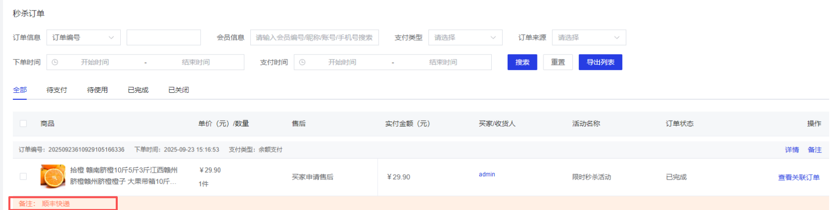 秒杀订单及售后订单