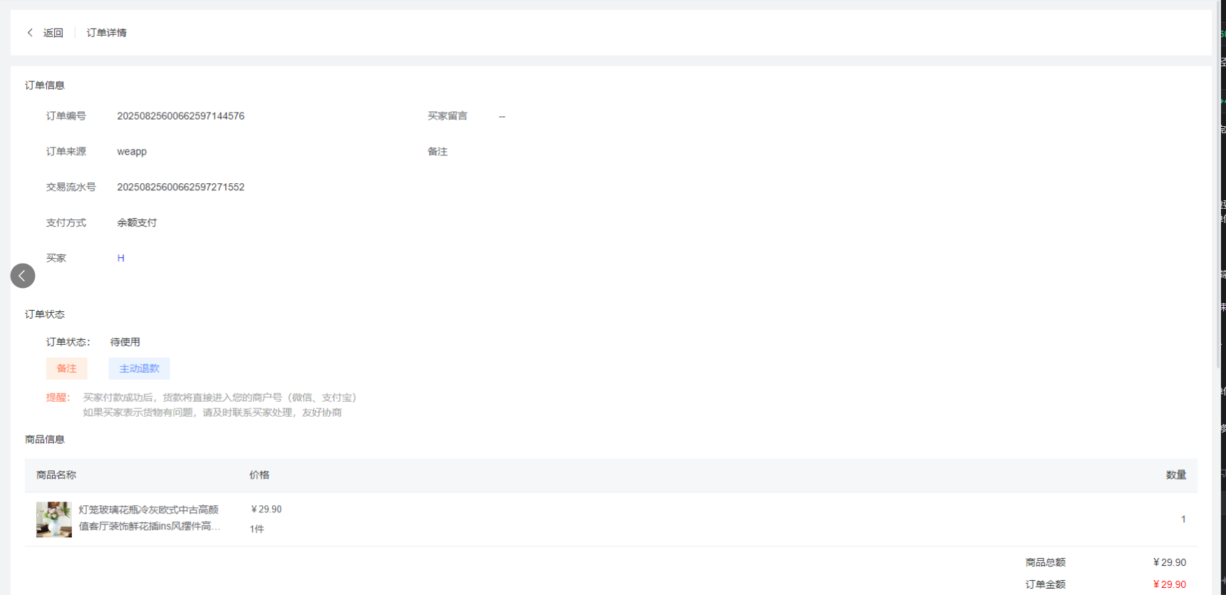 商家可以为订单添加备注信息,记录订单的特殊情况或处理说明,方便后续跟踪和管理。