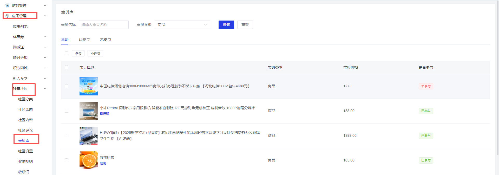 应用管理 >应用列表 > 种草社区 > 宝贝库