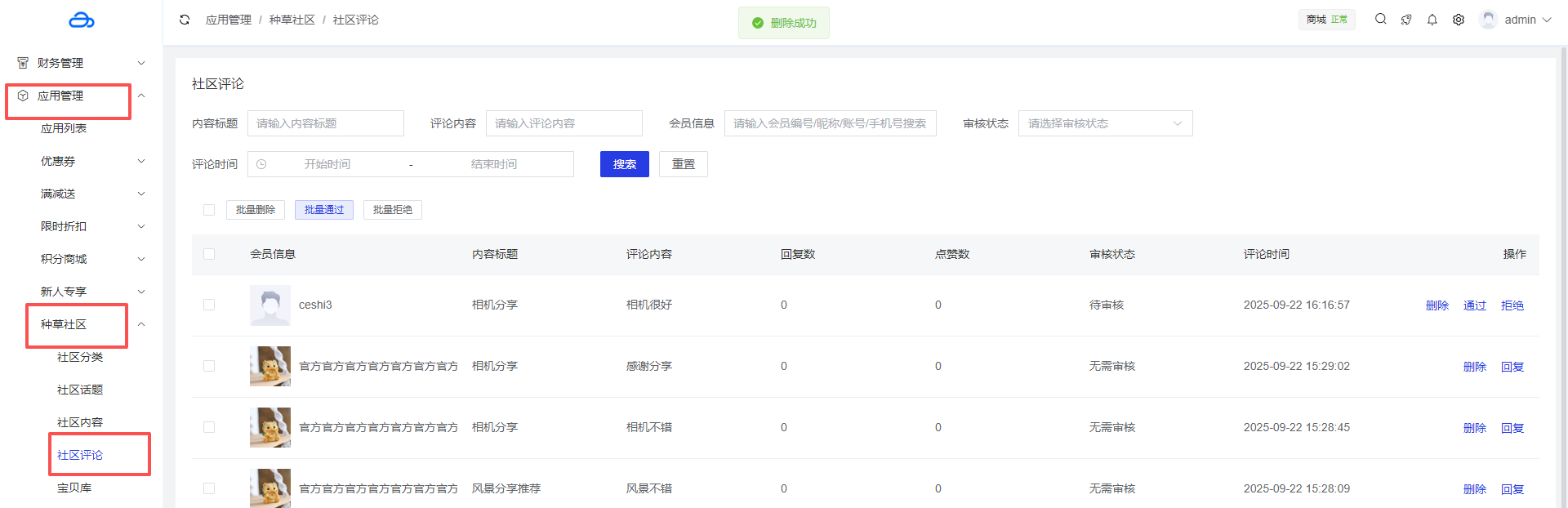 应用管理 >应用列表 > 种草社区 > 社区评论