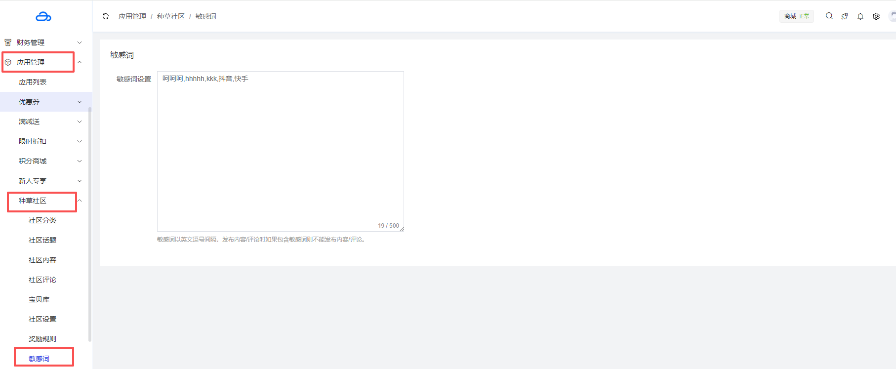 应用管理 > 应用列表 > 种草社区 > 敏感词