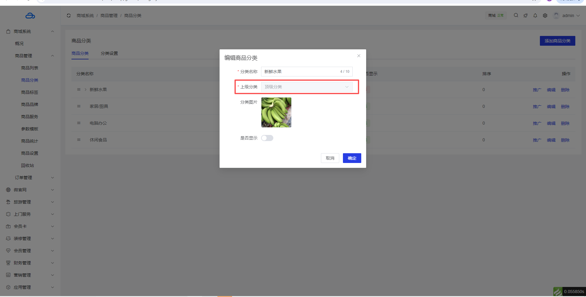 2、编辑商品分类