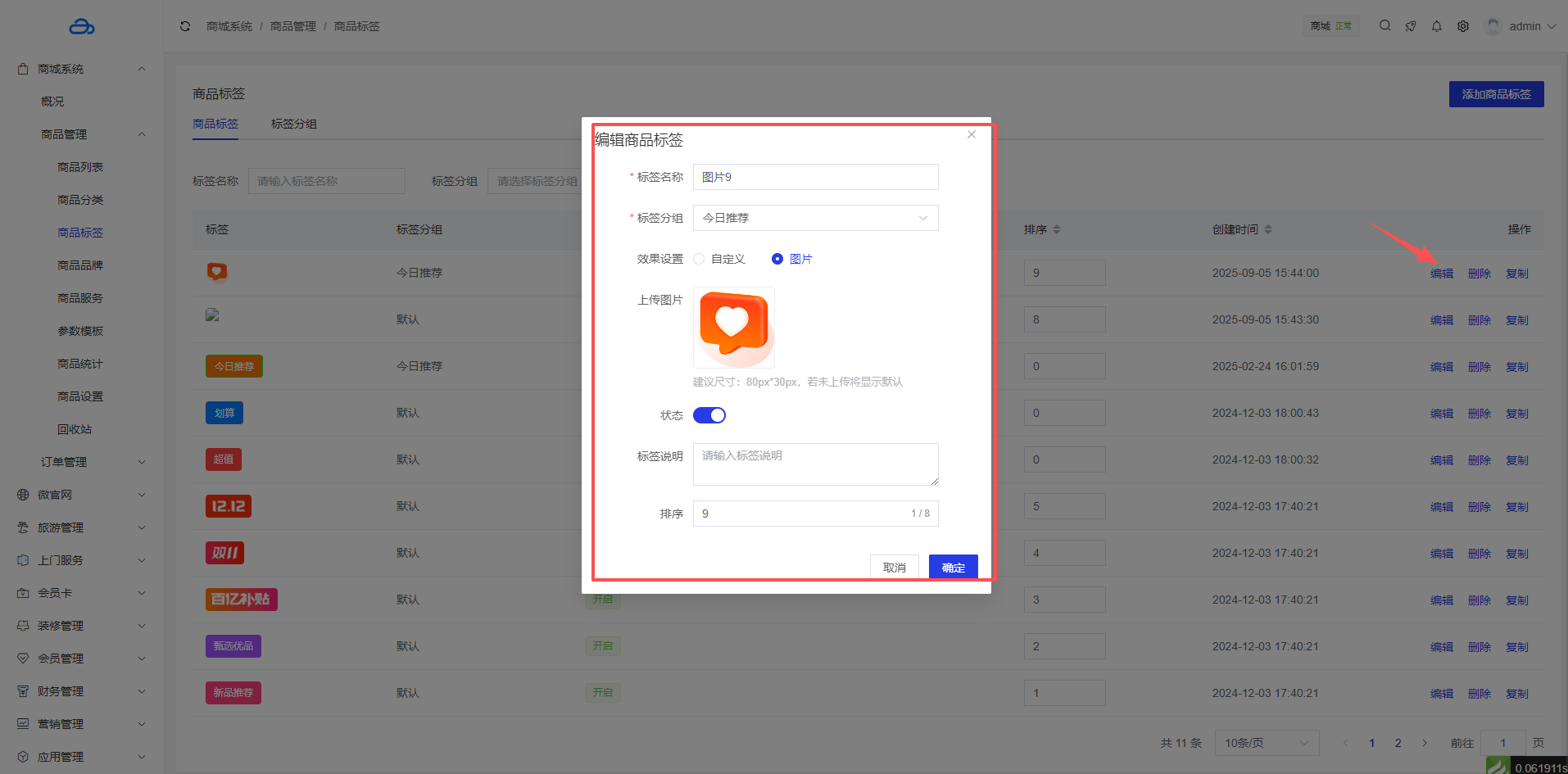 2、编辑商品标签