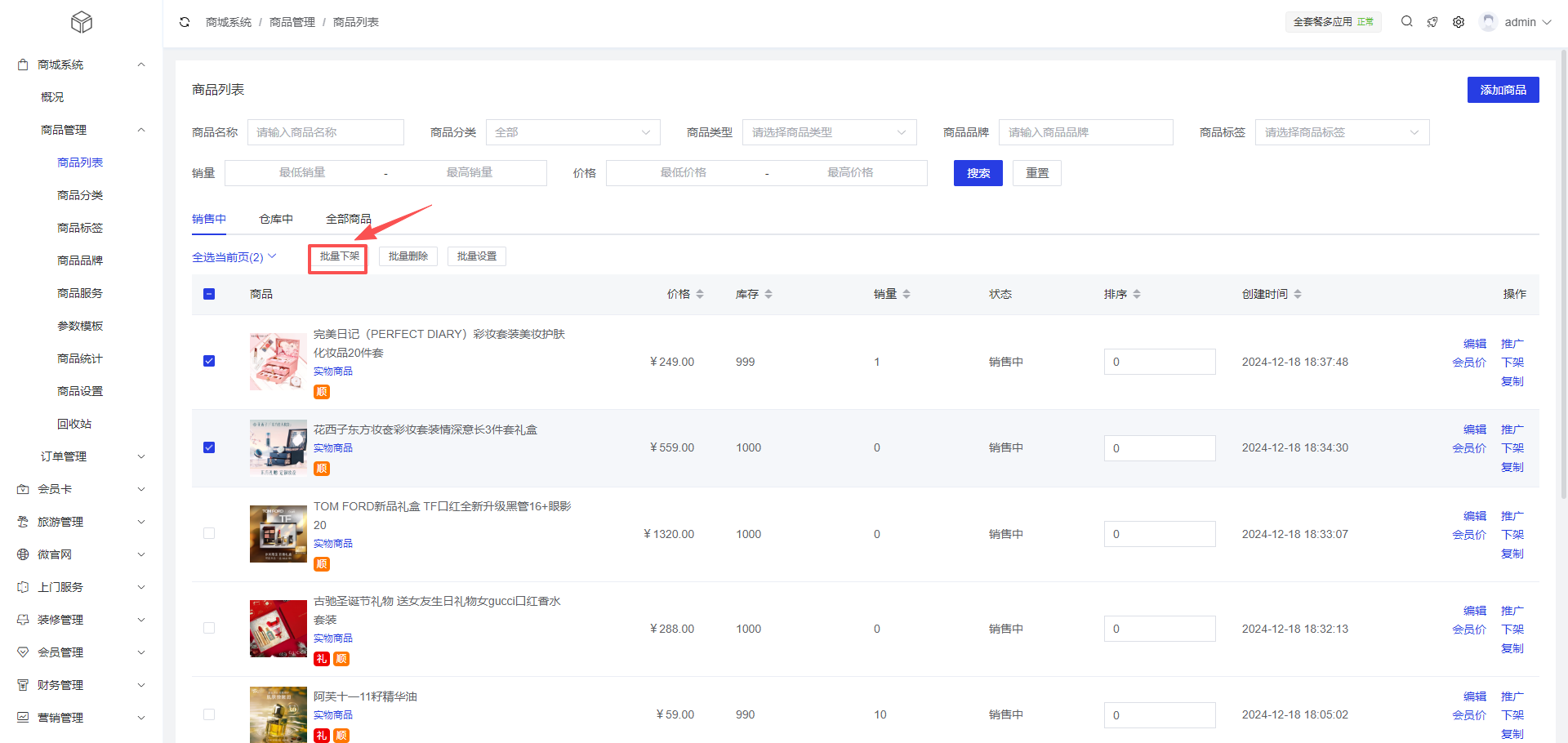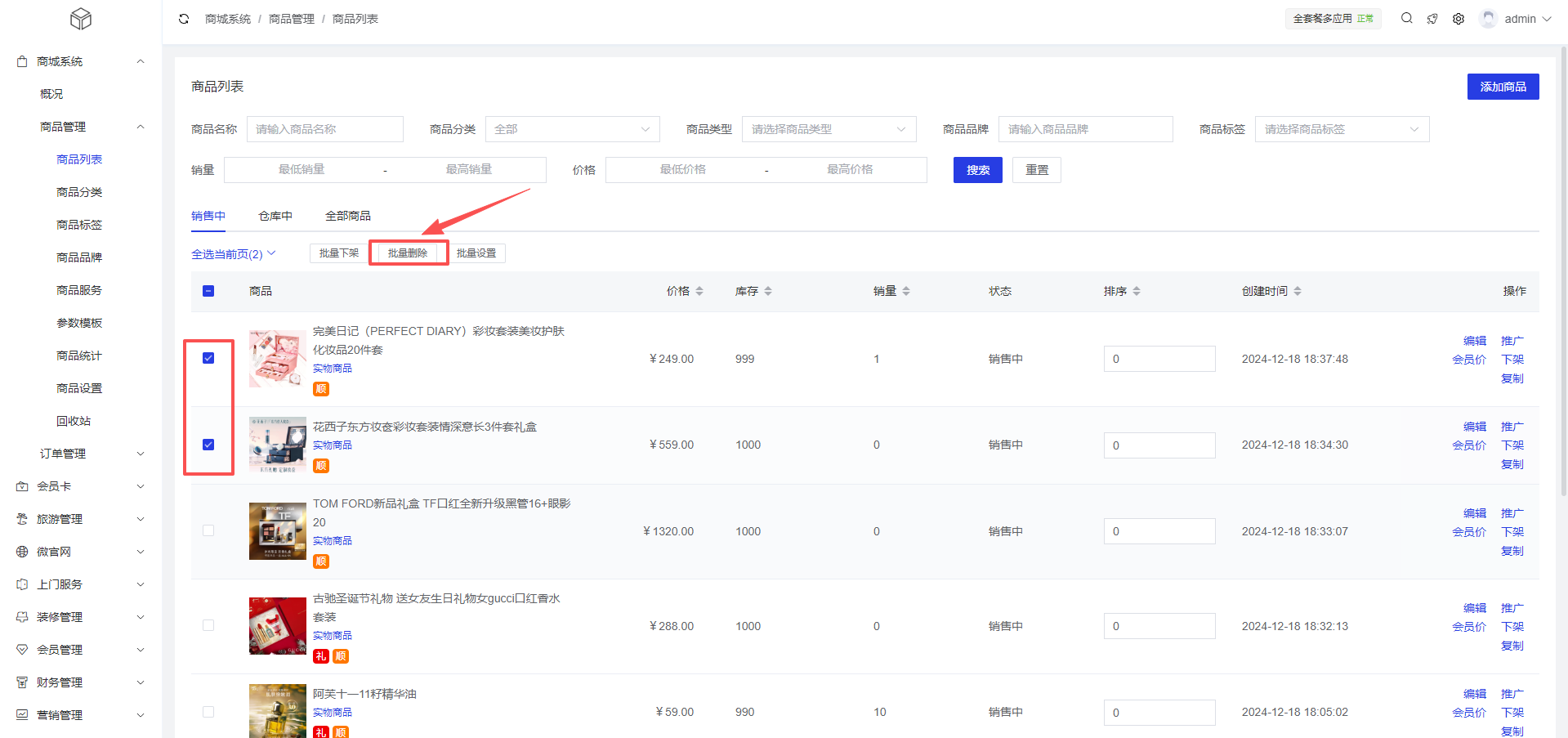 ⚠️需要注意:正在参与营销活动的商品,无法进行删除操作
