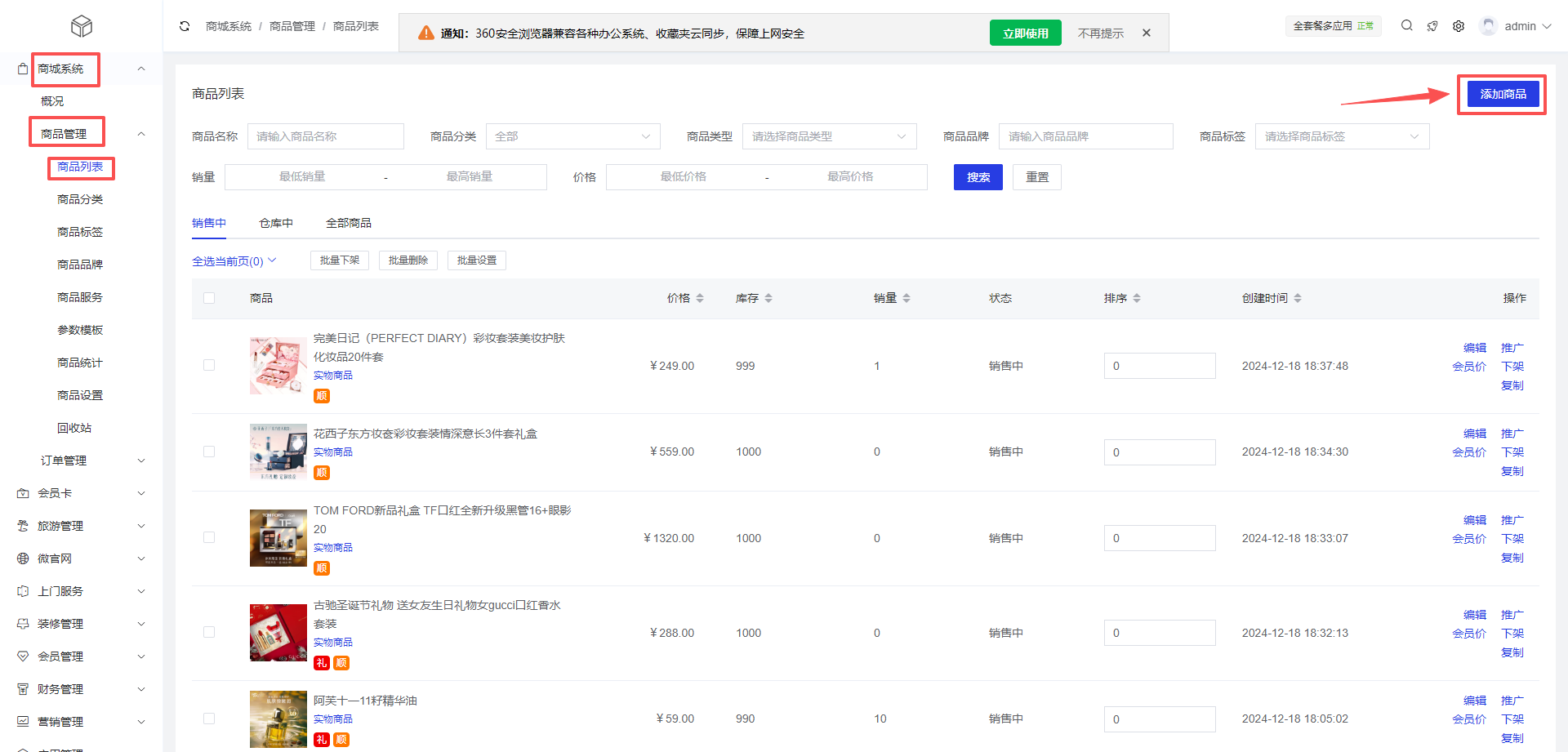 商品添加是商城系统中用于创建和发布新商品的核心模块,商家通过此功能可以将商品信息录入系统并展示给消费者。该功能支持商品的全生命周期管理,包括商品创建、信息编辑、状态管理(上架/下架)等操作,为商家提供便捷的商品管理工具。