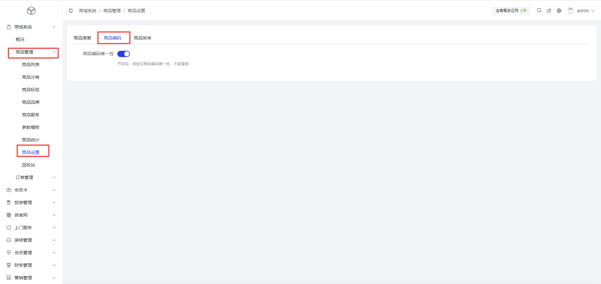 编码唯一性:开关开启后,系统将验证商品编码的唯一性,防止重复编码的商品创建。保障库存数据准确性,避免订单混淆。