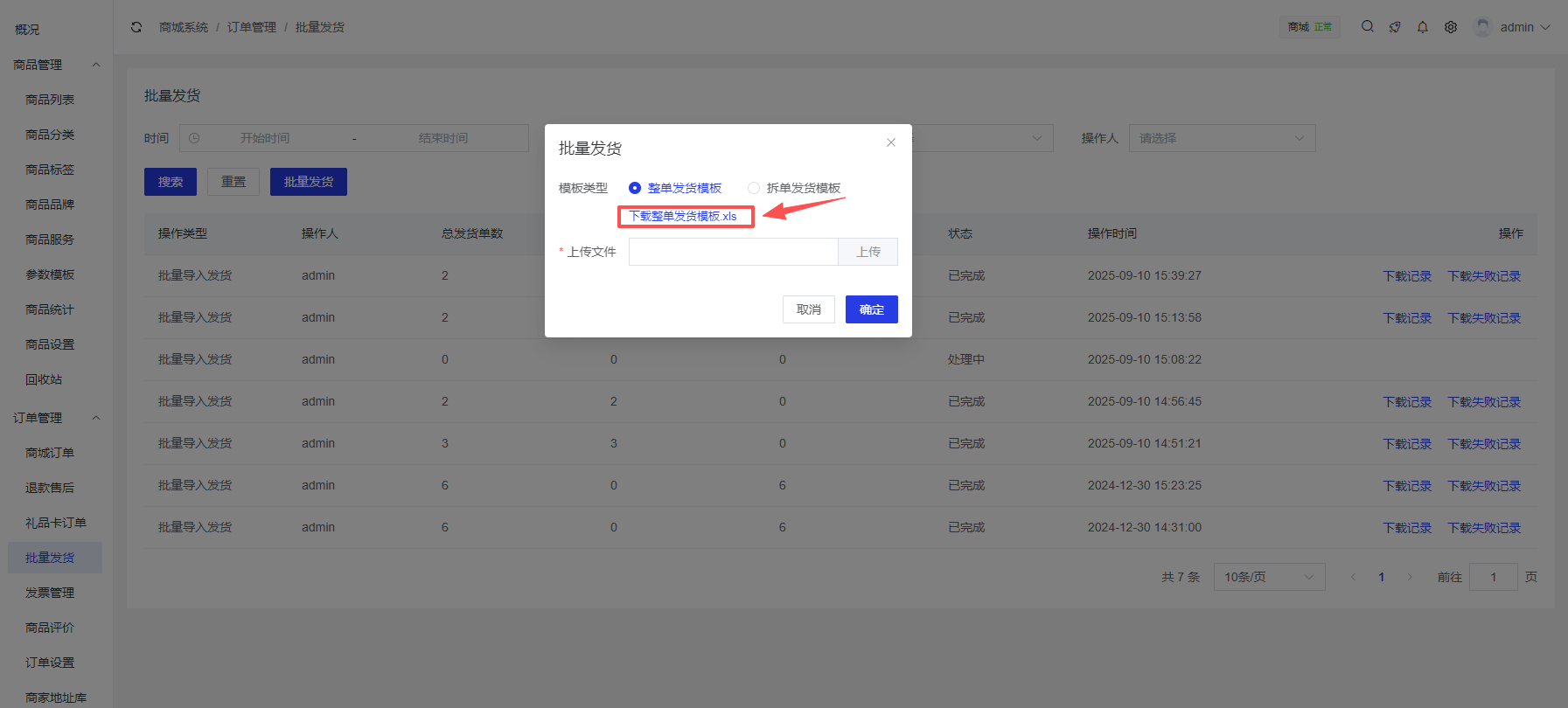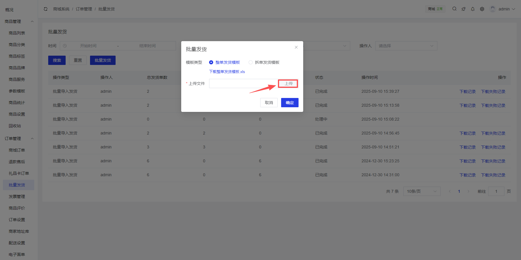 批量发货允许商家通过模板导入方式一次性处理多个订单的发货操作,支持整单发货和拆单发货两种模式,大幅提升订单处理效率,减少重复操作。