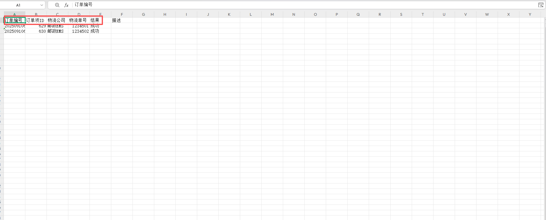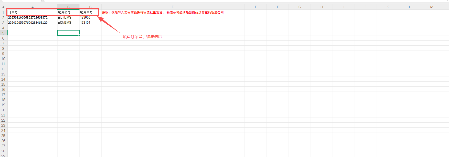 - 物流公司必须是当前站点存在的物流公司(具体可在【配送设置】>【物流配送】>【物流公司】中查看)