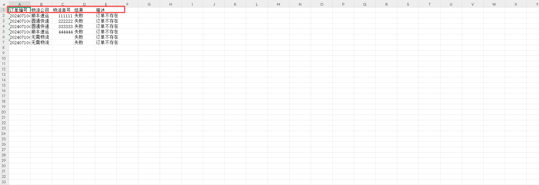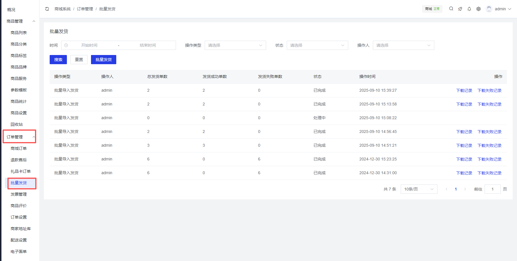 - 发货失败:查看发货失败的订单列表,包含订单编号、结果、失败原因描述等信息