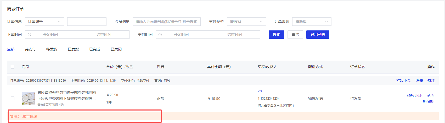 商家可以为订单添加备注信息,记录订单的特殊情况或处理说明,方便后续跟踪和管理。