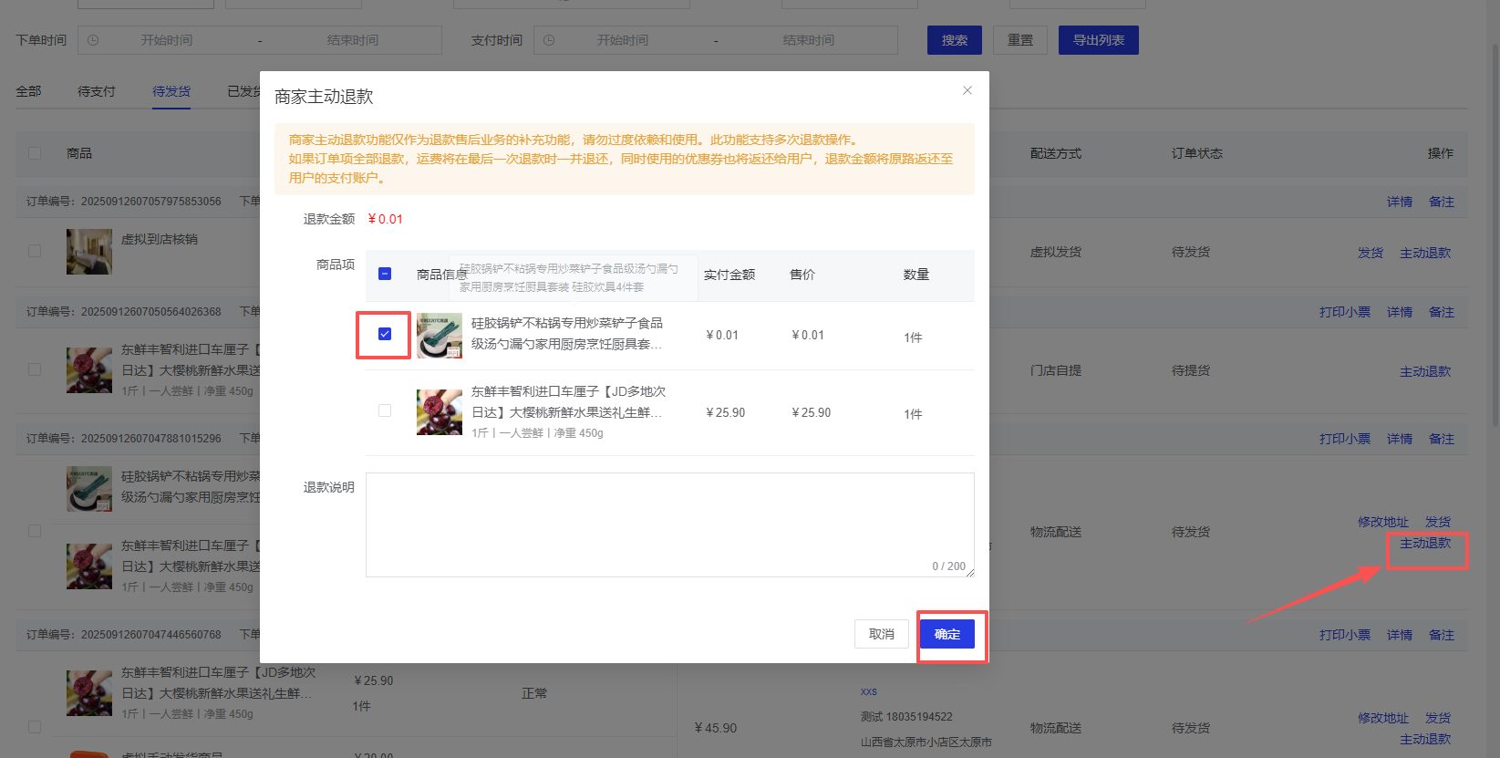 - 商家主动退款功能仅作为退款售后业务的补充功能,请勿过度依赖和使用。此功能支持多次退款操作。