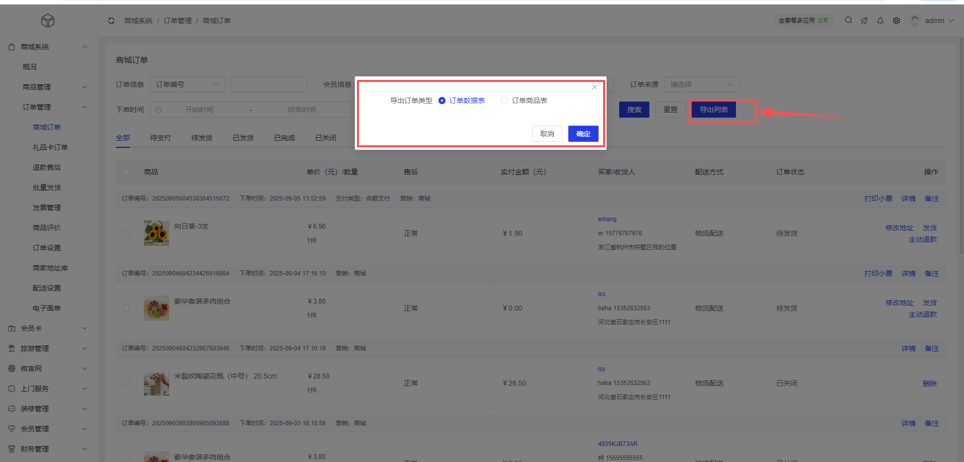 系统提供两种导出类型,商家可以根据需要选择合适的导出格式: