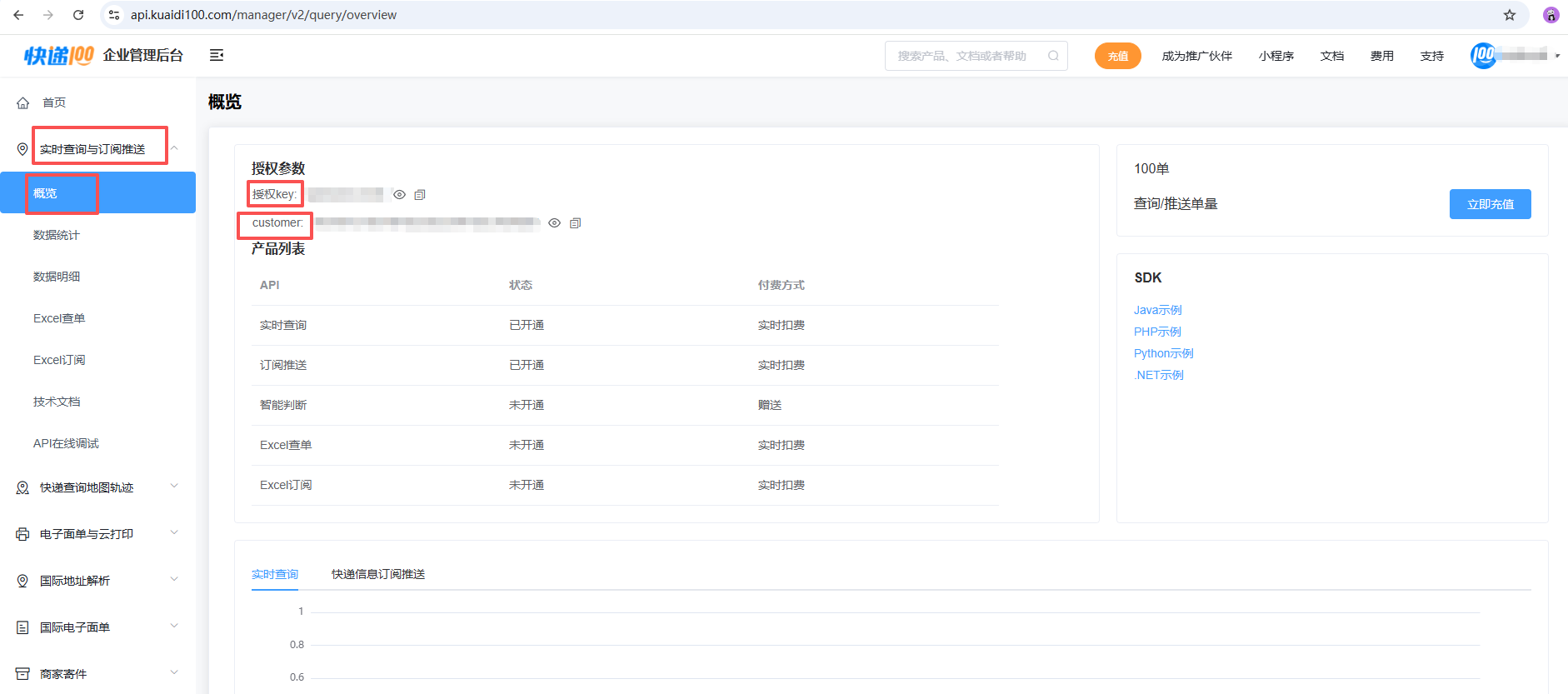 - 快递100:选择此接口需要在快递100官网申请账号并获取相应的接入凭证