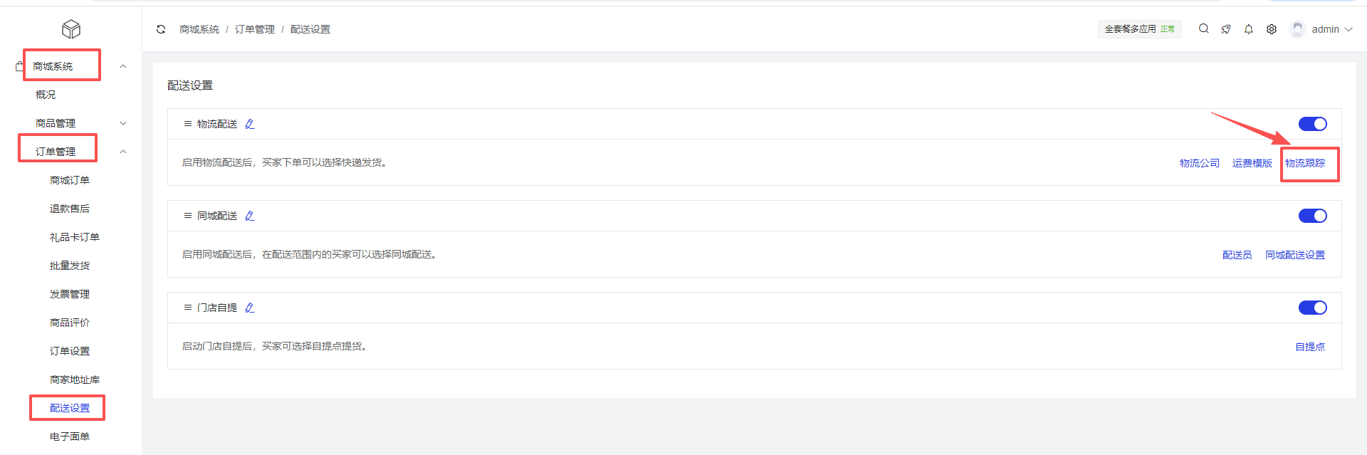 商城系统 > 订单管理 > 配送设置> 物流跟踪