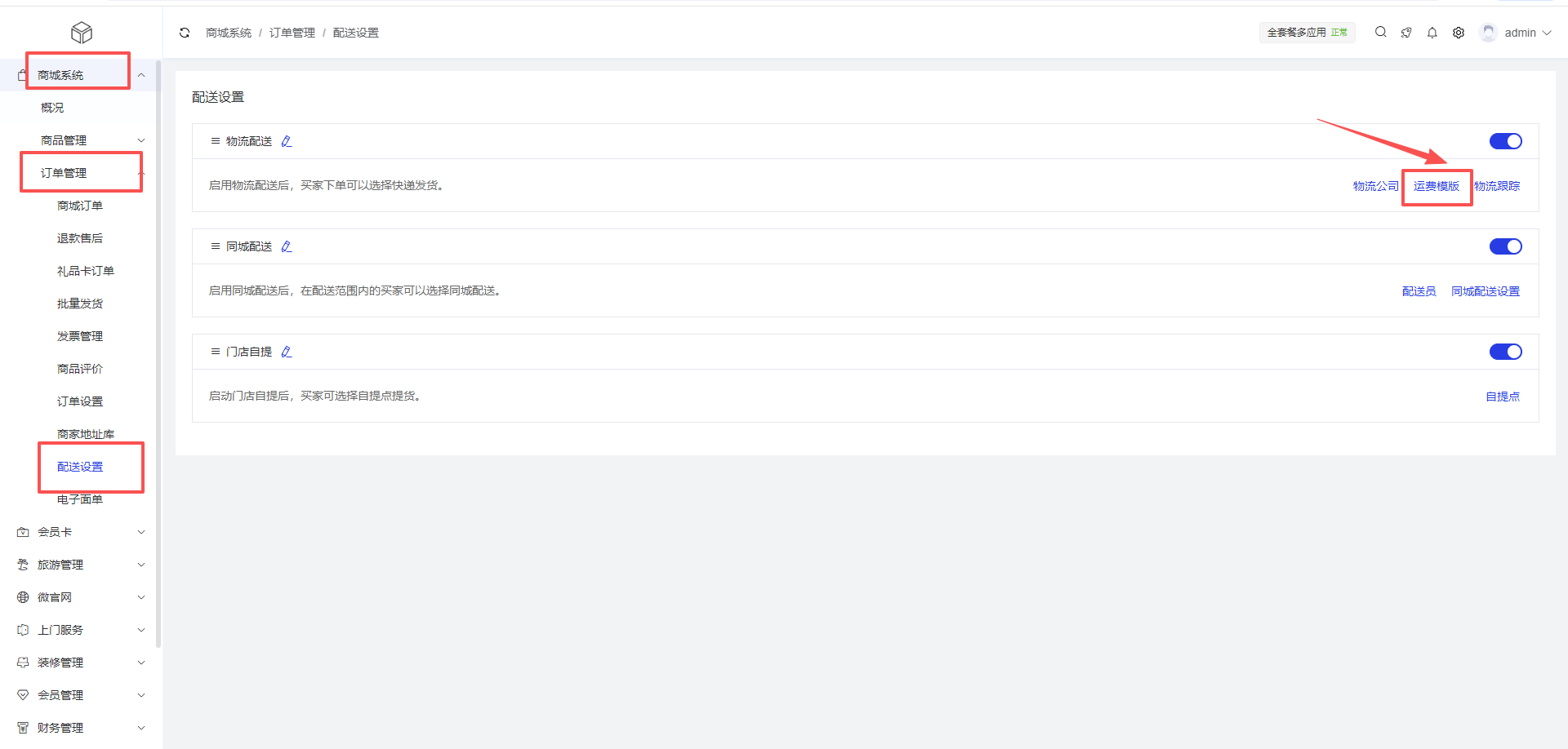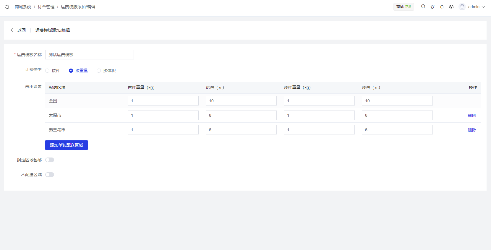 商城系统 > 订单管理 > 配送设置 >运费模板