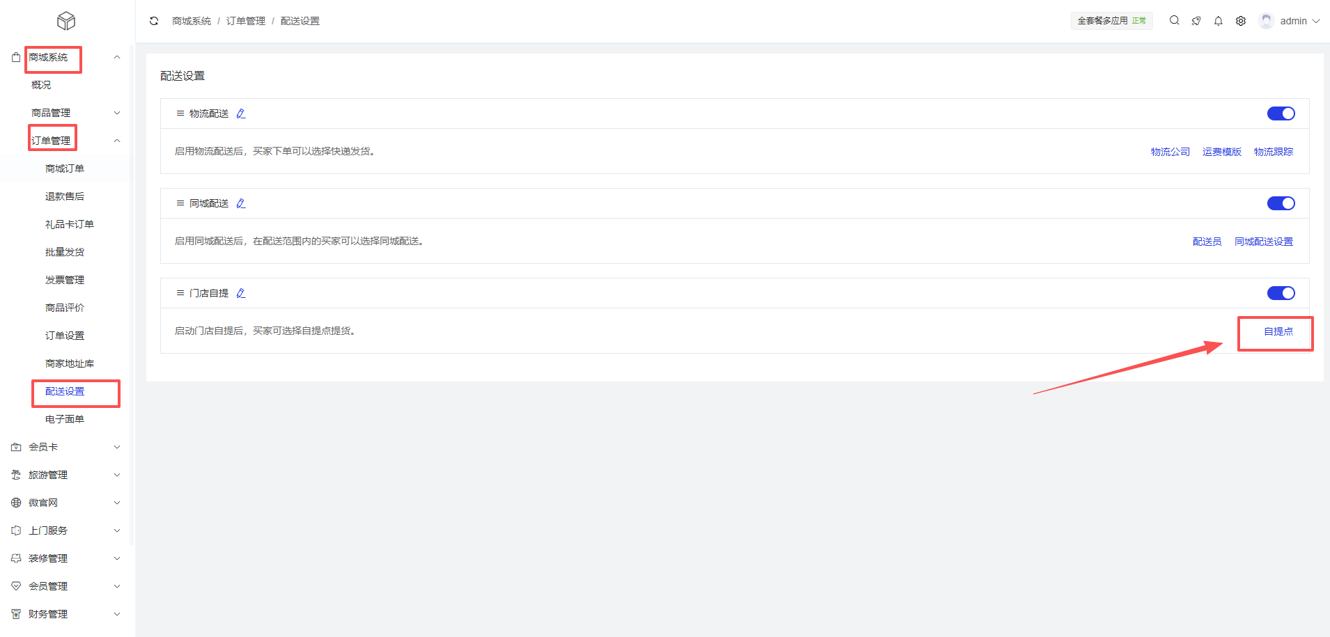 开启后下单页面支持门店自提,需要设置门店自提点信息,关闭则隐藏此功能