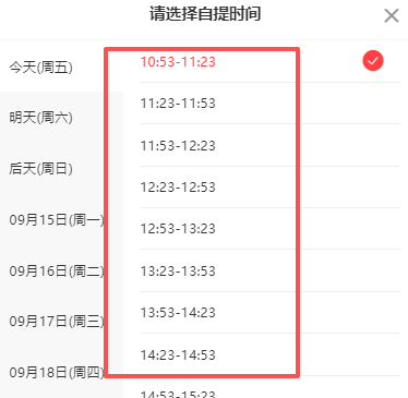 - 对设置的自提时段进行切分后,在手机端将显示切换后的时段供用户选择