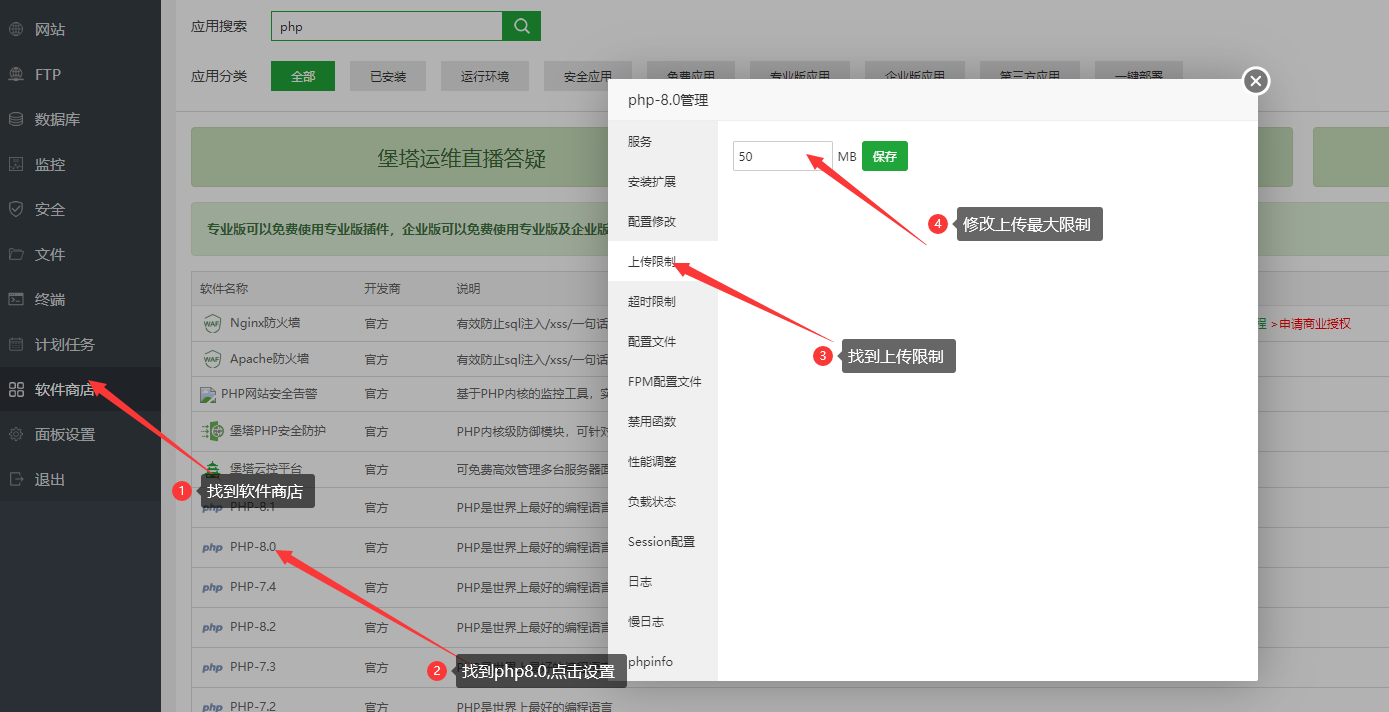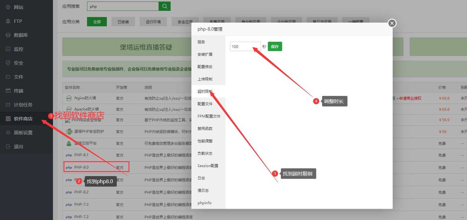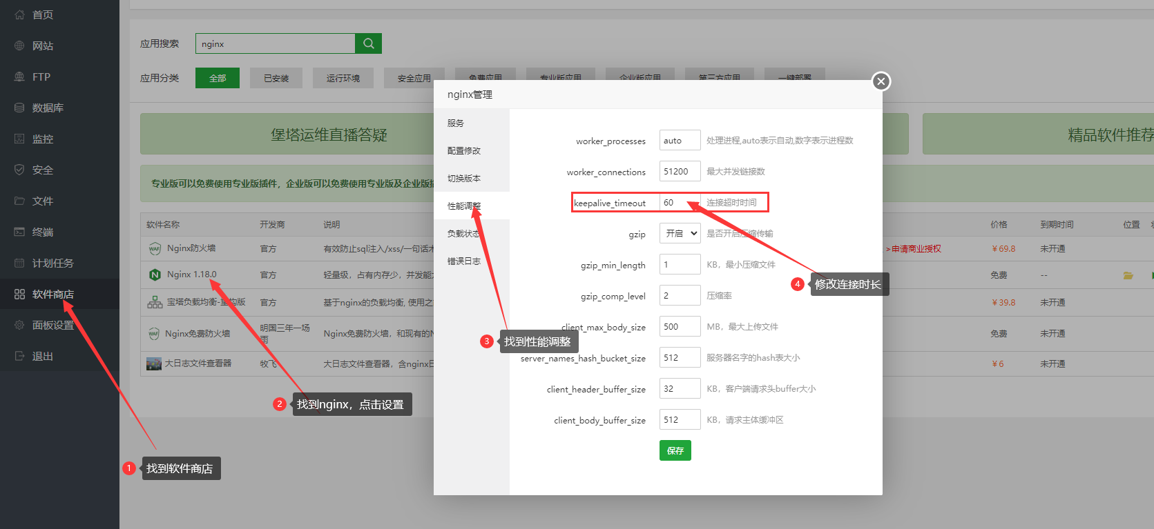 遇到这种情况,我们只需要针对自己服务器最大连接时间进行适当调整即可,一共有四处允许最大时长,修改后会按照四处中的最短时间执行。