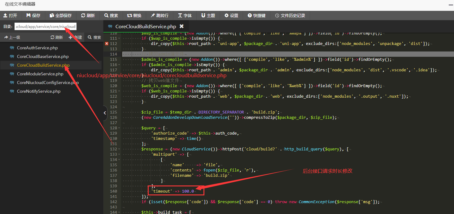 ④、文件中代码限制(文件位置:niucloud/app/service/core/niucloud/CoreCloudBuildService.php)